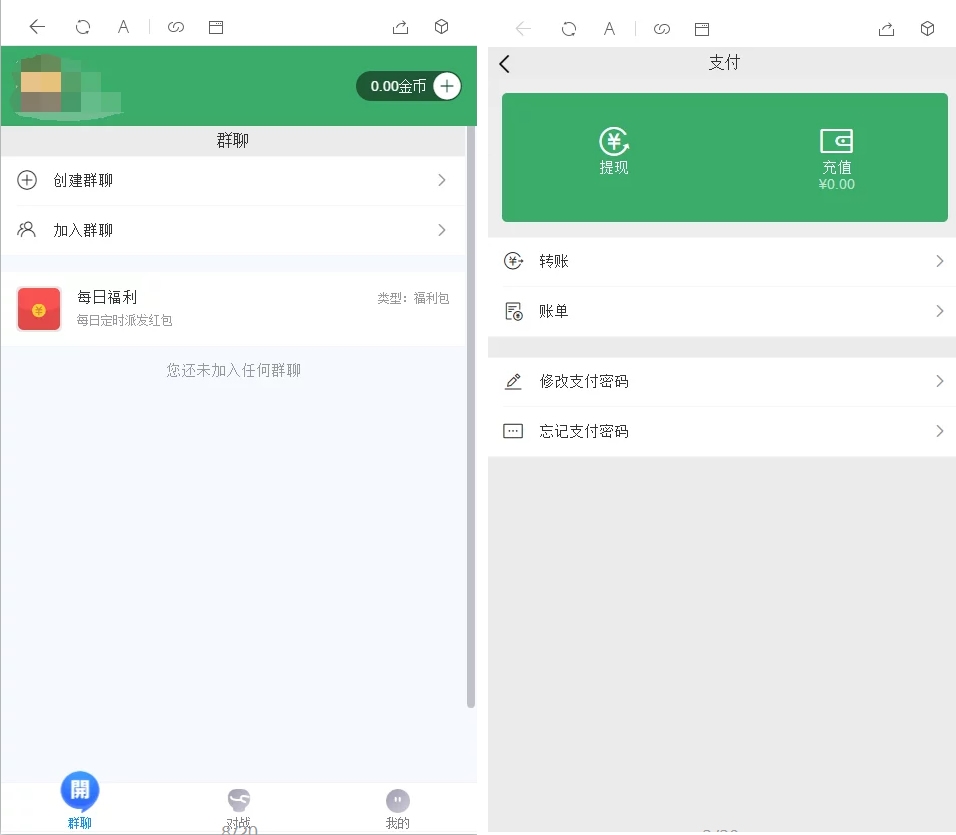 红包4.0源码全新UI设计+群聊+支付已接.  改了支付接口的版本,群聊红包直通车仿微信界面四合一玩法,扫雷/接龙/二八/牛牛全部完美可用,UI仿微信交互页面非常漂亮,机器人可在后台一键开启关闭,支持创建群聊,可直接拉好友扫码入群,自带每日定时福利发放功能,推广起来省去很多麻烦,带有支付密码功能,充值和登录均是对接派特,微信支付宝双通道,登录免公众号接口自带防封。提现改为上传二维码,后台审核打款,安全快捷。带完整搭建教程,不明白的看教程也能部起来。
