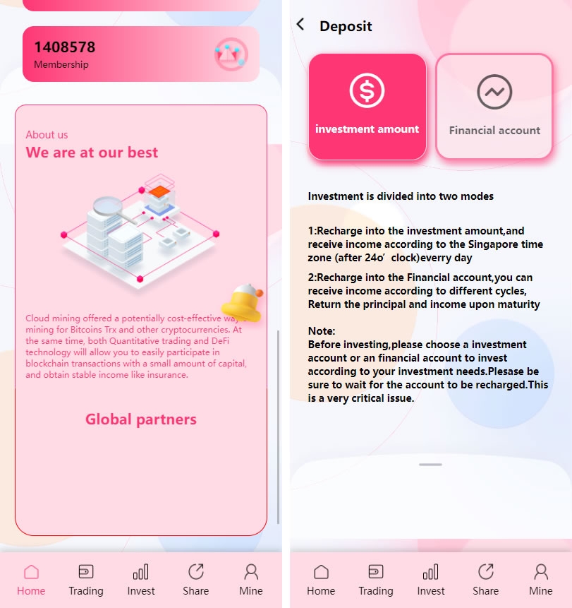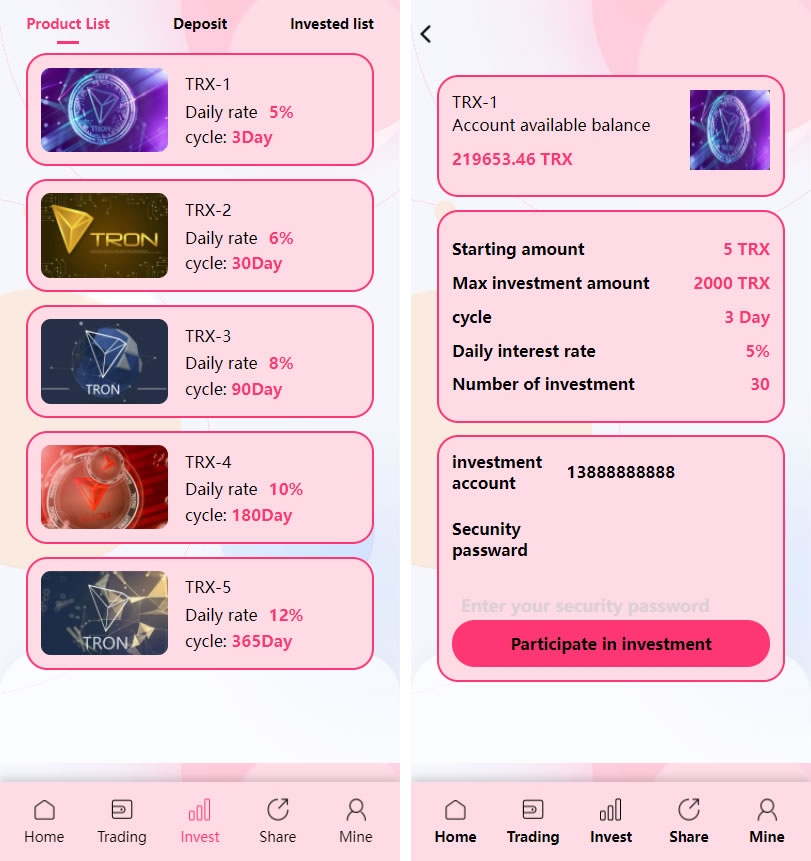 trx粉色UI多语言理财系统